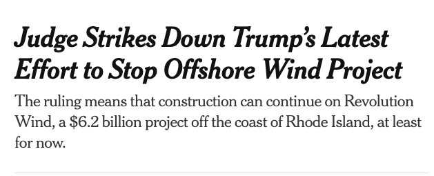 They do not deserve to have their sovereignty violated. No one does. An exposé in last week’s issue of the New Yorker, Denmark is sick of being bullied by Trump, acknowledges that the relationship between Denmark and Greenland is complicated, but also demonstrates how the two populaces are united in their anger toward Trump’s anti-Denmark tactics that, incidentally, have a direct impact on many Americans, including yours truly. His attack on the Danish energy company Ørsted’s billion dollar Revolution Wind project, which is designed to provide cheap wind power to residents in Connecticut and Rhode Island, has been in the news lately. Even though the nearly completed project is being protected by the courts for the moment,3 Trump’s animus toward wind turbines knows no bounds (It can’t just be abour a golf course in Scotland; one must have blown his hair out of whack or something), and Danes are seething at these attacks.