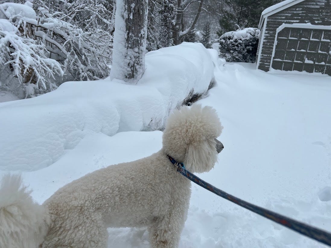 I hope those of you in my neck of the woods are surviving the blizzard. If you are reading this, presumably you have power (otherwise, why are you reading this???? Save your battery!) Here’s a photo of Cobie this morning, wondering why his owners don’t invest in a Port-O-San.