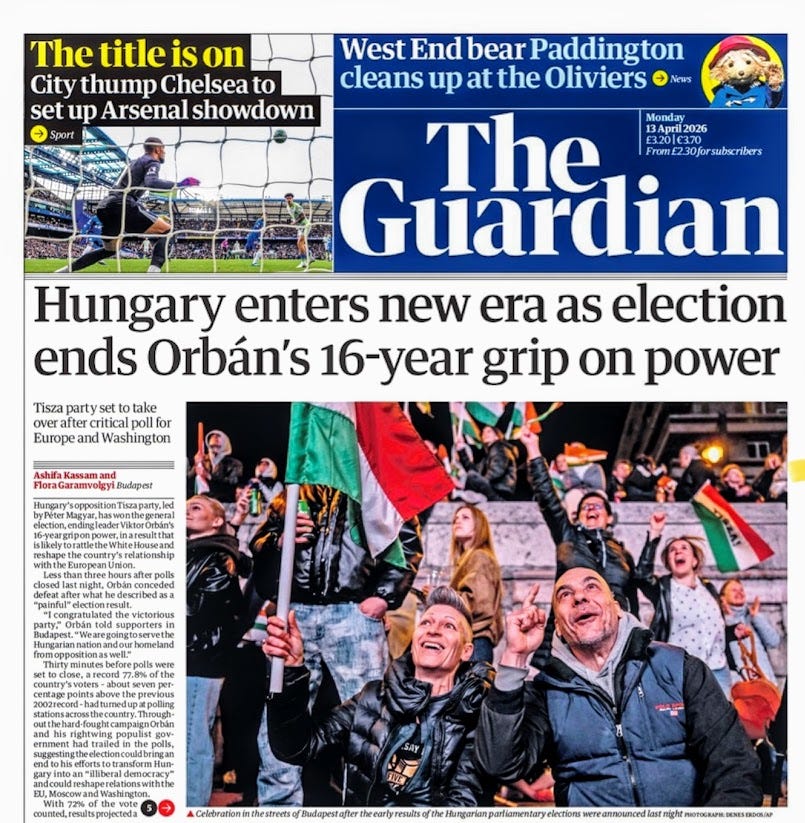 In Hungary, the opposition came together in a remarkable manner to achieve a shocking landslide last week. They learned from prior failures, and they applied those lessons wonderfully.