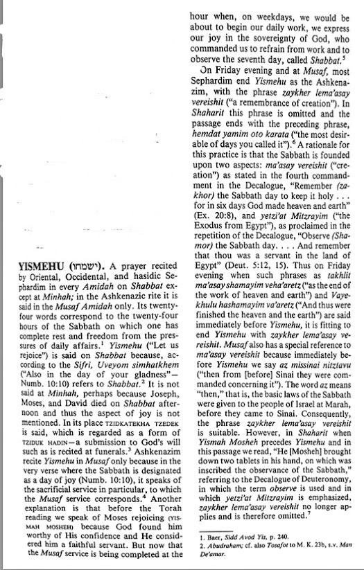 Yismechu is an enjoyable but very expendable prayer in a part of the Sabbath service, and Musaf, which literally means “added-on,” is an extra prayer service (Amidah), designed to recall and replace the sacrifices brought to the ancient temple on Shabbat.