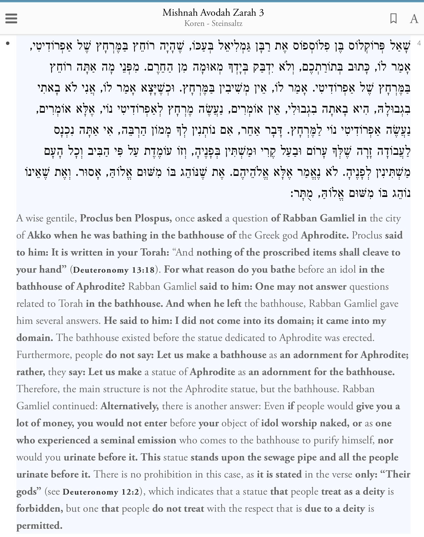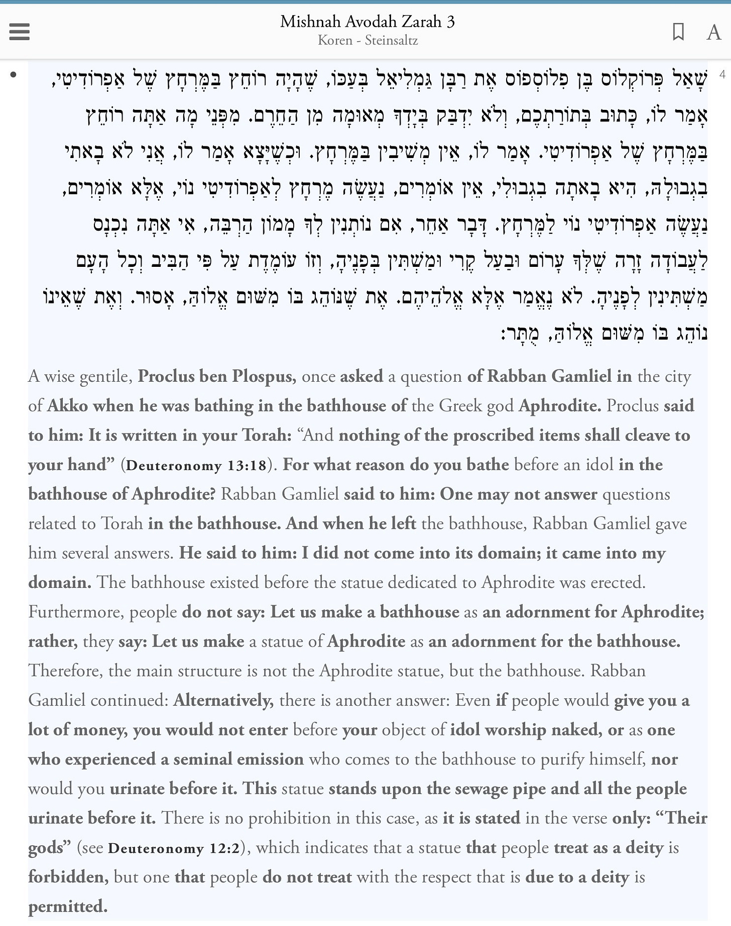 In the Talmud, a rabbi is asked how he could possibly enter the Roman bathhouse (the one described happened to be in nearby Akko, another integrated city) decorated with idols of Aphrodite. The rabbi says, essentially, “Hey, I gotta take a bath. And it’s not like I’m entering Aphrodite’s place – Aphrodite entered mine!”8