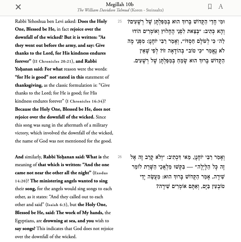 Regardless of its association with the plagues and the Seder, the idea of God not mourning the wicked goes all the way back to the Talmud. It is unquestionably a powerful expression of the prevalent Jewish value of never trivializing war and seeing each human being as being created in God’s image.