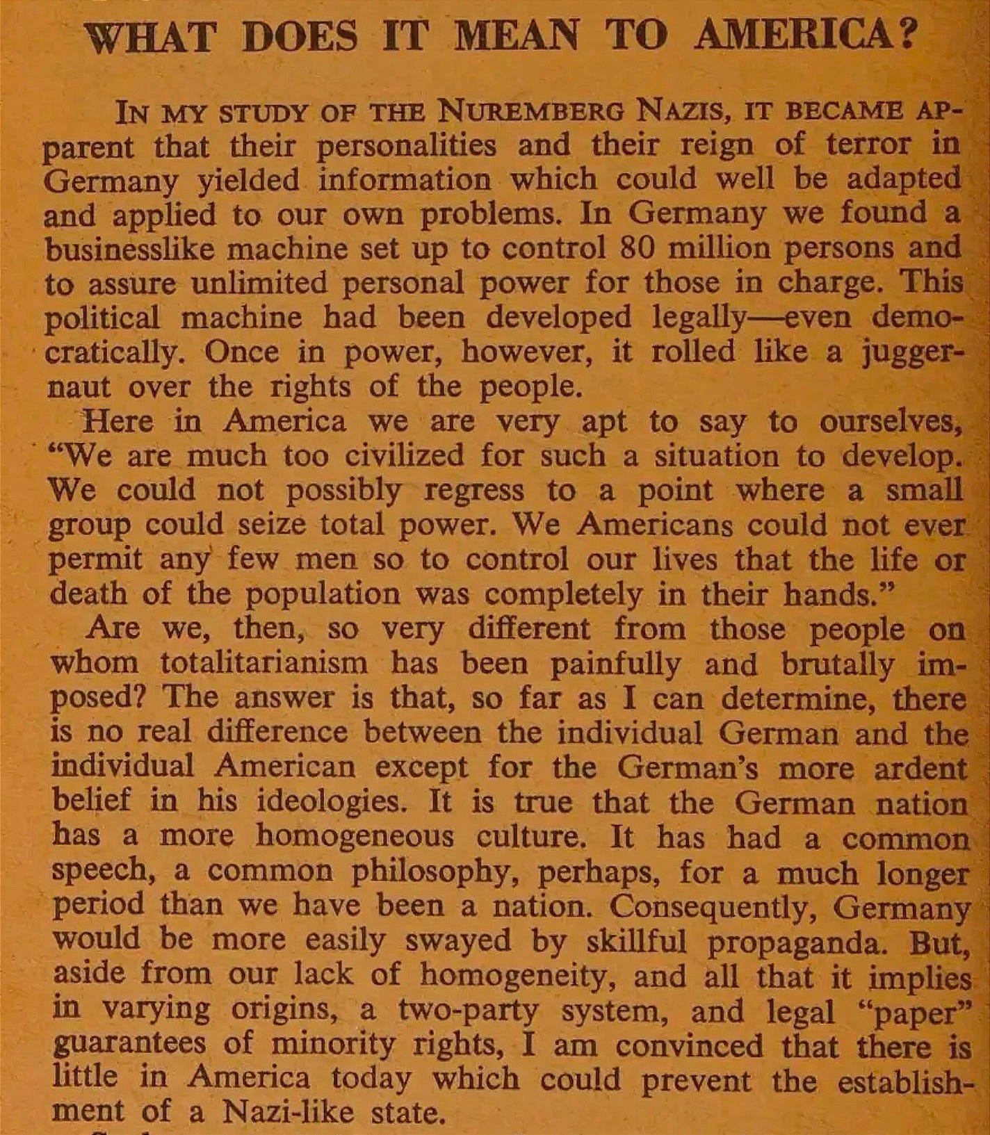 The only difference is that we know what happened back in Göring time. That’s why they had the Nuremberg trials in the first place. To prevent it from happening again.