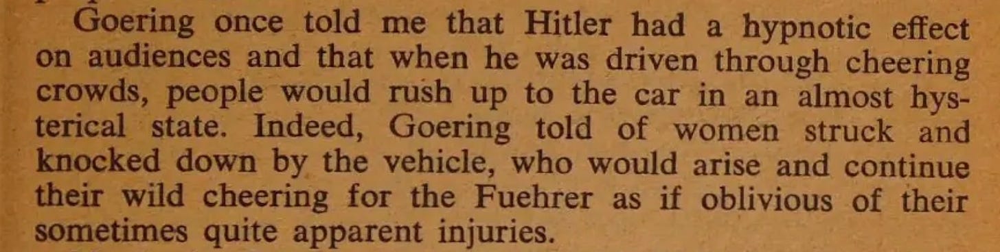 Hermann Göring: First of all, I had seen Germany crushed. And along comes a man who says “We can reclaim our former glory.” Would you not follow a man like this?