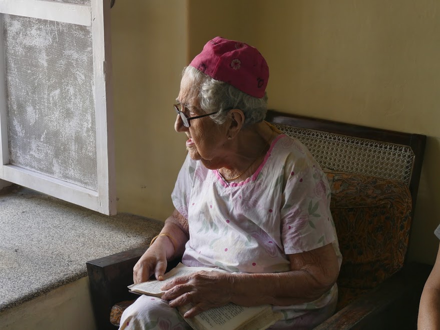As our season of renewal approaches, a tribute to an extraordinary woman who passed away a few hours ago. Sarah Cohen was 96. The video below was taken by me when I visited Sarah a year and a half ago in her embroidery shop in Kochi, India, where she embroidered kippot. She was chanting Psalms from her siddur, as she did daily, using a melody that is, to my knowledge, unique to her community. Sarah was the matriarch of that city's tiny but very important and historic Jewish community. Every morning, she enjoyed a range of Kerala and Jewish dishes (dosa, idli, challah bread) and then spent the majority of her day sitting by the window, singing prayers and people-watching. She loved to meet Jews visiting from around the world, and I was privileged to have met her. Imagine, being one of just a dozen or so Jews remaining in her community - living in a country with 1.339 billion people. Yet she was honored and proudly welcomed the world to "Jew Town" as her section of Kochi is known. She was once visited by British Royalty and a visit to Sarah has was even rated (highly) by Trip Advisor!