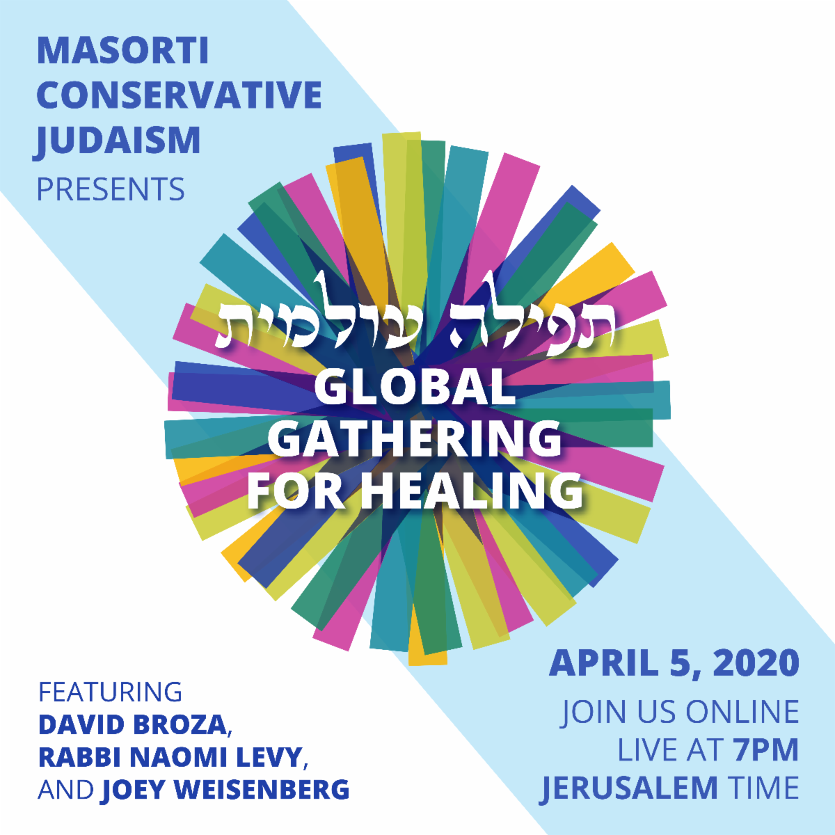 Join a world-wide healing service this Sunday with other Masorti/Conservative communities around the world featuring clergy and musicians from Israel, England, Brazil and the United States.  See flyer for details: Click here for Facebook access.