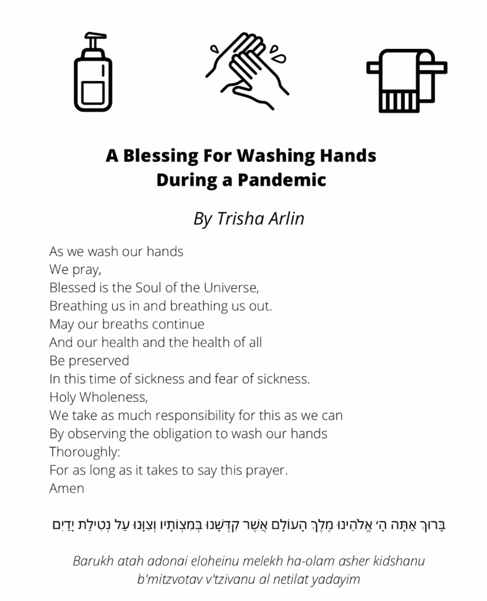 Here is a handwashing blessing we can recite as we invoke blessing and life with each scrub. Read this - it takes as long as two "Happy Birthdays."