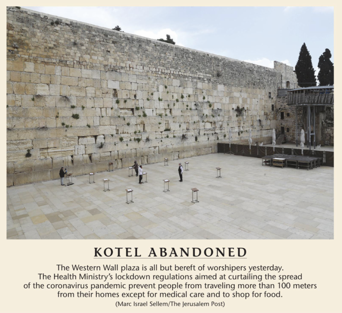 This is a message that had to be repeated constantly by people in the public trust, and that includes religious leaders.  That's the message of an article distributed today by the Religion News Service: "Why religious congregations may be crucial to halting the spread of COVID-19."  The role that faith leaders can play in getting the word out about public health measures is considerable. While some are taking this responsibility seriously - as evidenced by that photo at the Kotel, and rabbis who have addressed the crisis with due halachic seriousness,  and the Pope, who will be celebrating Holy Week essentially alone.  A rabbinic colleague wrote in the New York Times, "I Never Used My Computer on the Sabbath - Until the Coronavirus." And he found, as we have, how enriching the virtual can actually be. Last night we had a wonderful interfaith service (and an equally wonderful women's seder led by Beth Styles).  During the service, I noticed that Rev. Kate Heichler was in attendance and sent a "chat" note to her about how much of a pleasure it was to see her in our virtual midst (she left our community a few years ago).  She replied: