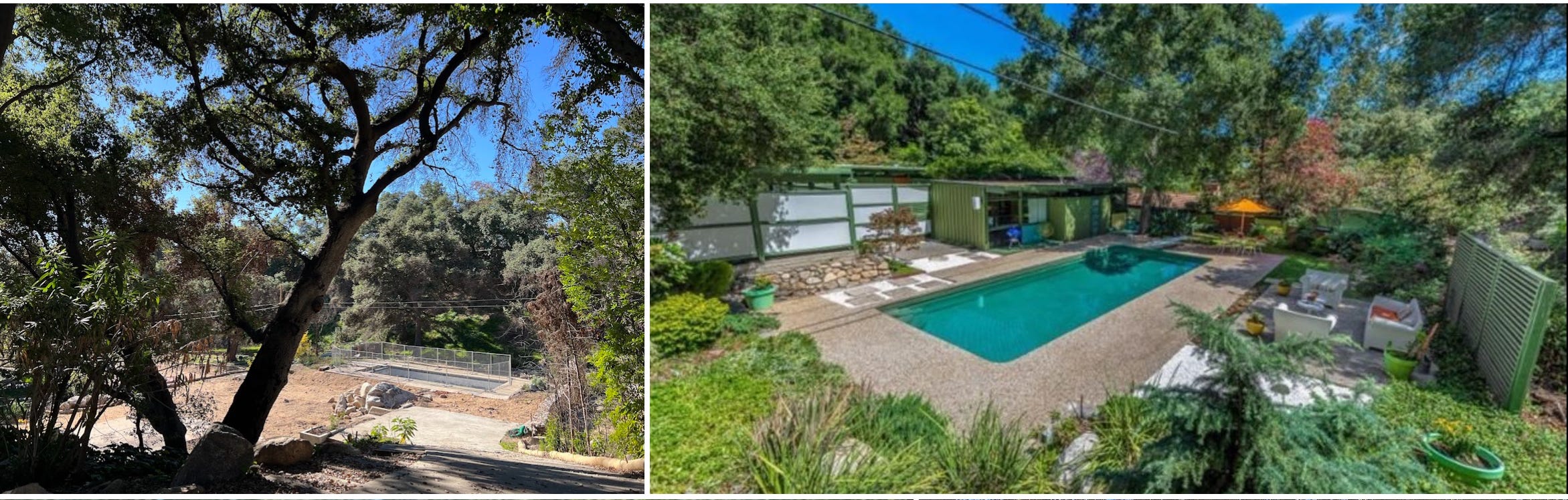 We stopped at the address of a Mid-Century Modern home that was one of the many historic houses for which Pasadena and Altadena are noted. As you can see from the before/after photos below, all that now remains of this home is the pool.