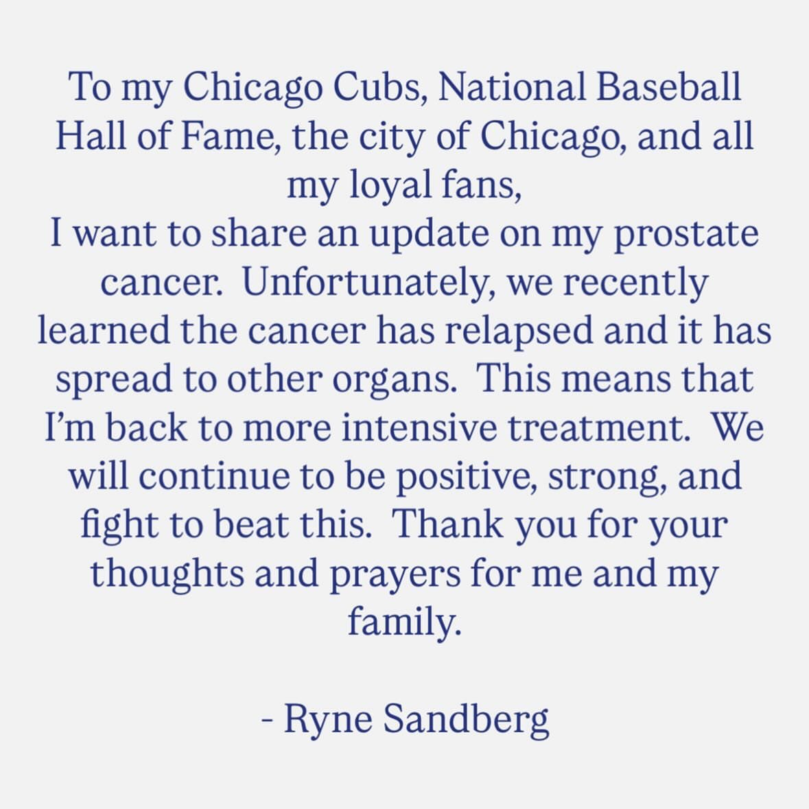 People like baseball Hall of Famer Ryne Sandberg, the second baseman who succumbed this week after being declared cancer-free last August, following his diagnosis of metastatic cancer in January of 2024. Last December, he gave his fans the shocking news that the cancer had returned and spread to other organs.1