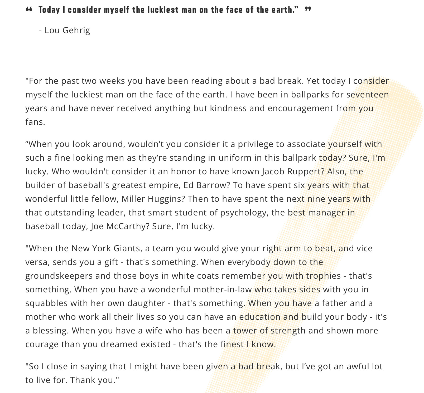 Gehrig’s speech, from the Baseball Hall of Fame site: