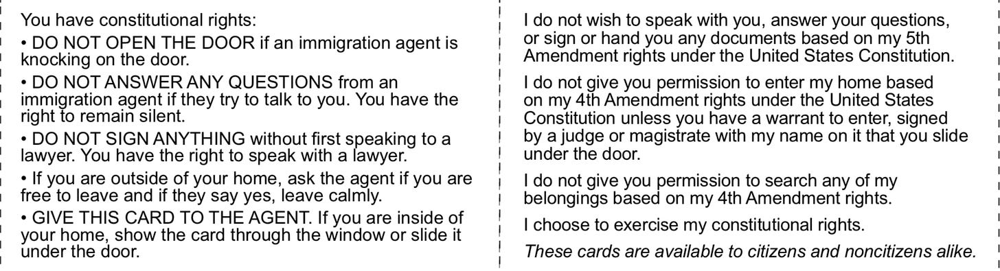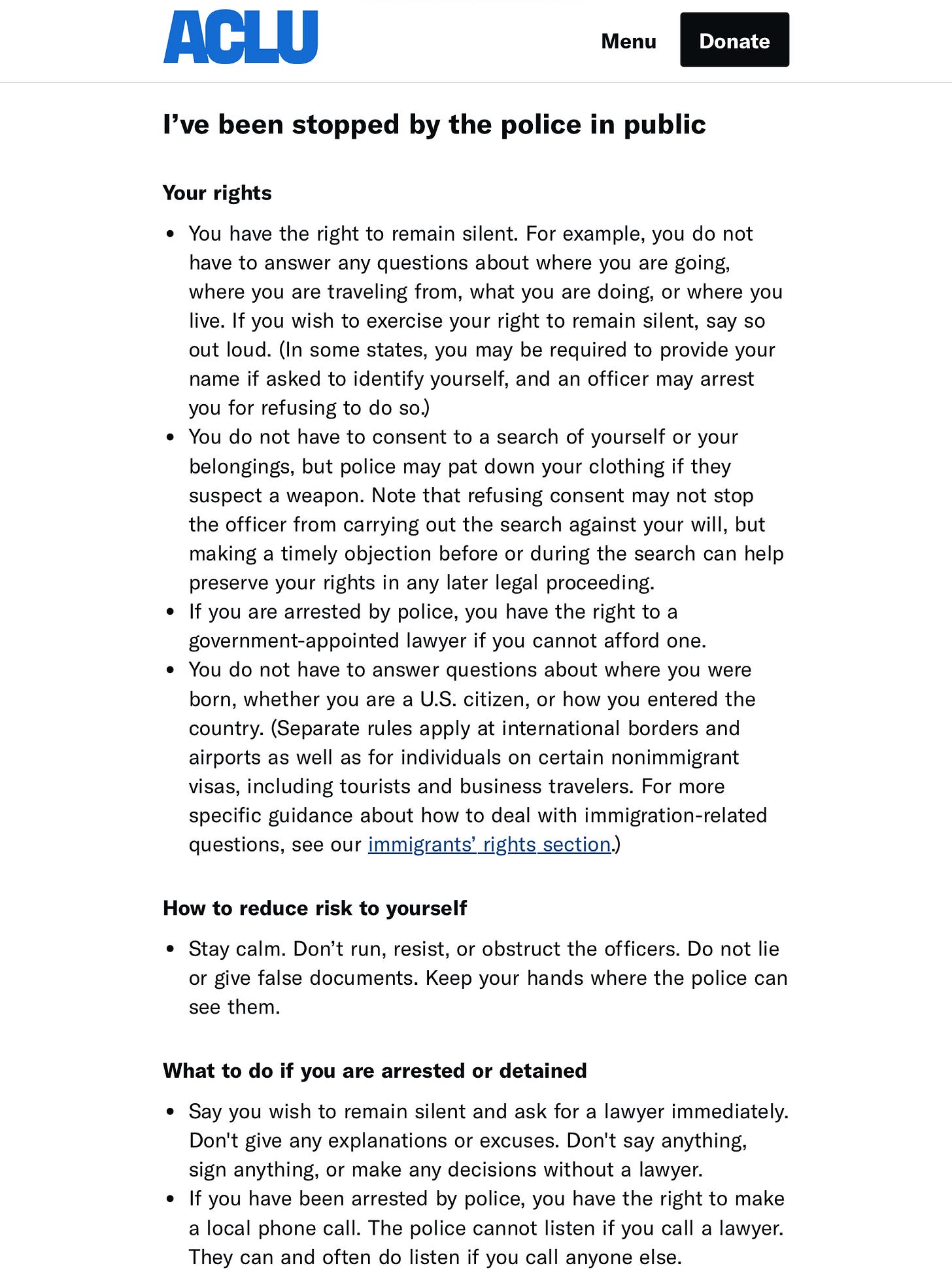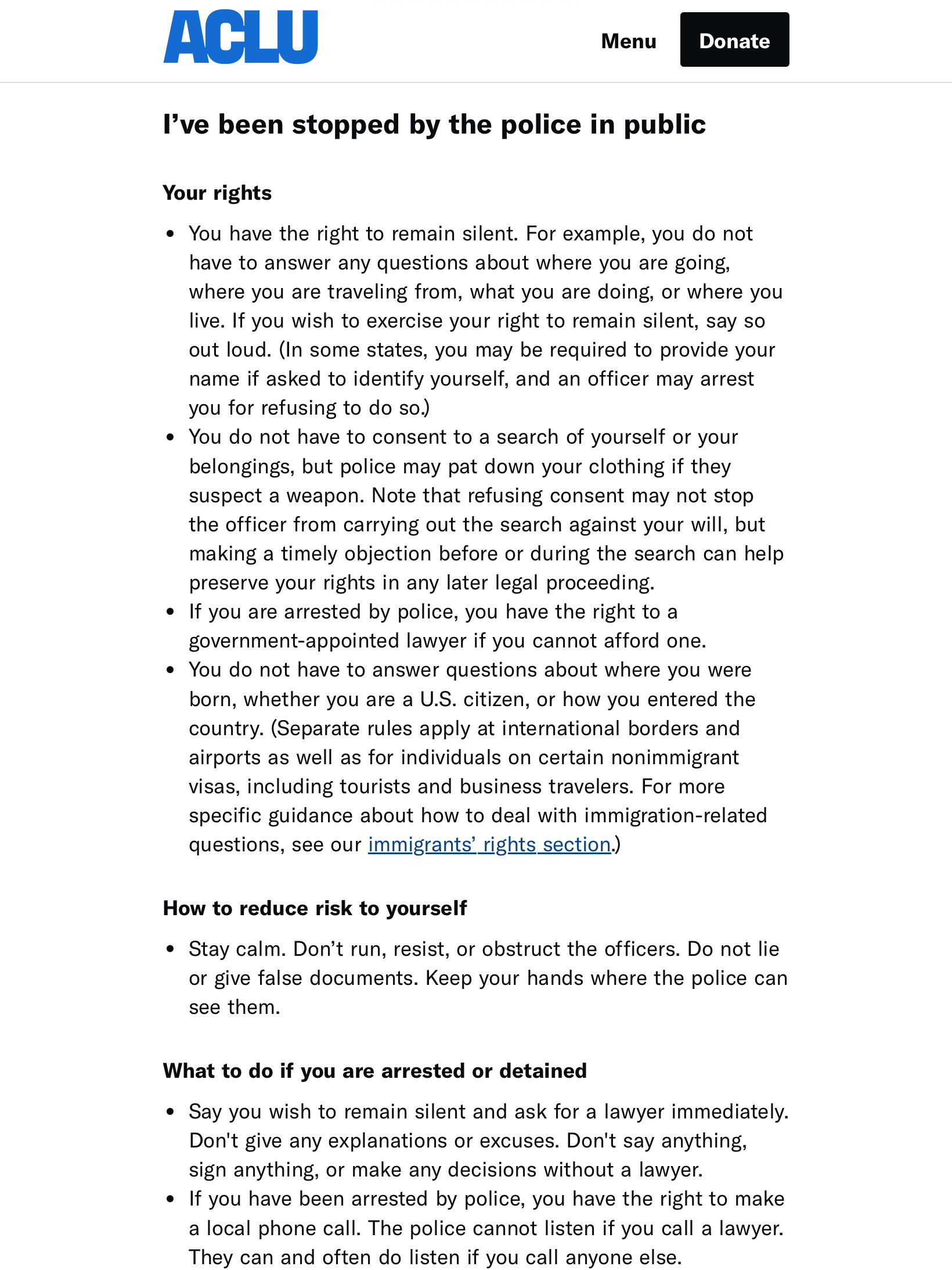Know your rights - If you are an immigrant, and even if not, print out this rights card and keep it in your pocket.