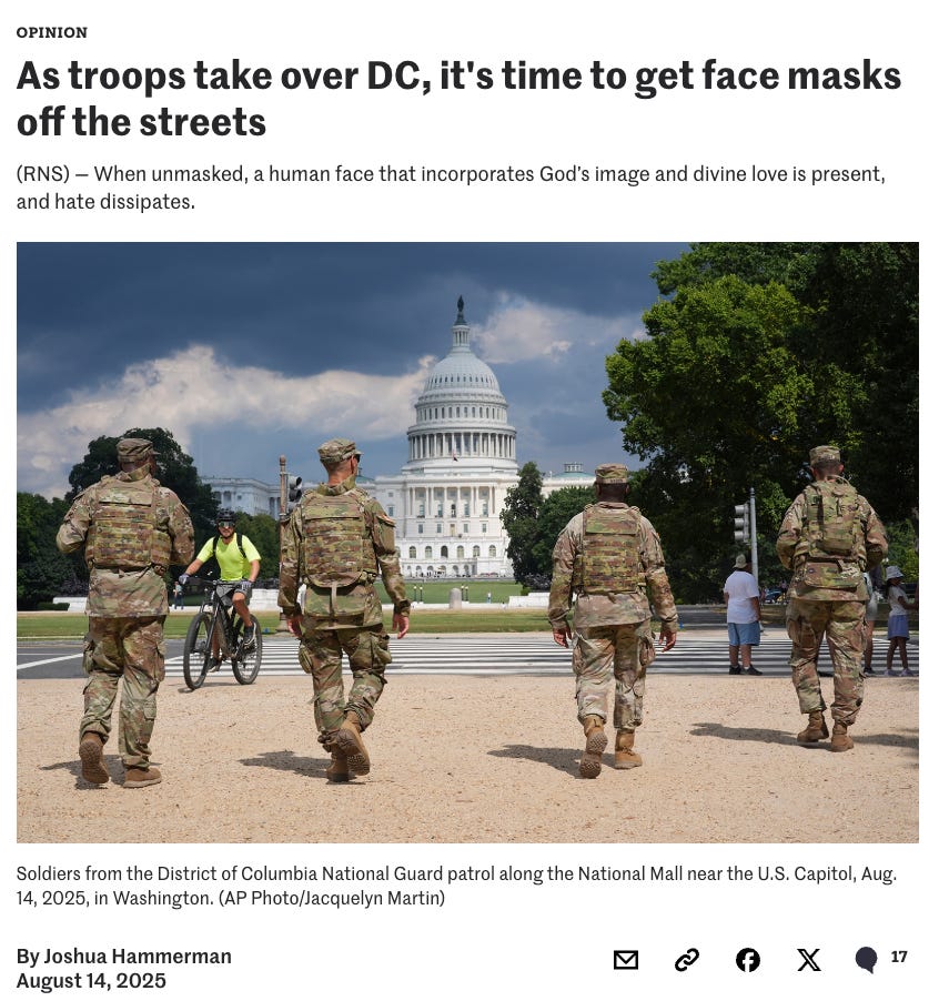 So if you will forgive me, I will not spend these last hours before the start of Shabbat arguing about the definition of genocide;1 or whether Jews who profess to be non-Zionist have cast themselves outside the Jewish fold;2 or whether American democracy has been imperiled even more by the outrageous military invasion of Washington DC3 and the Gerrymander Civil War being ginned up by the White House.