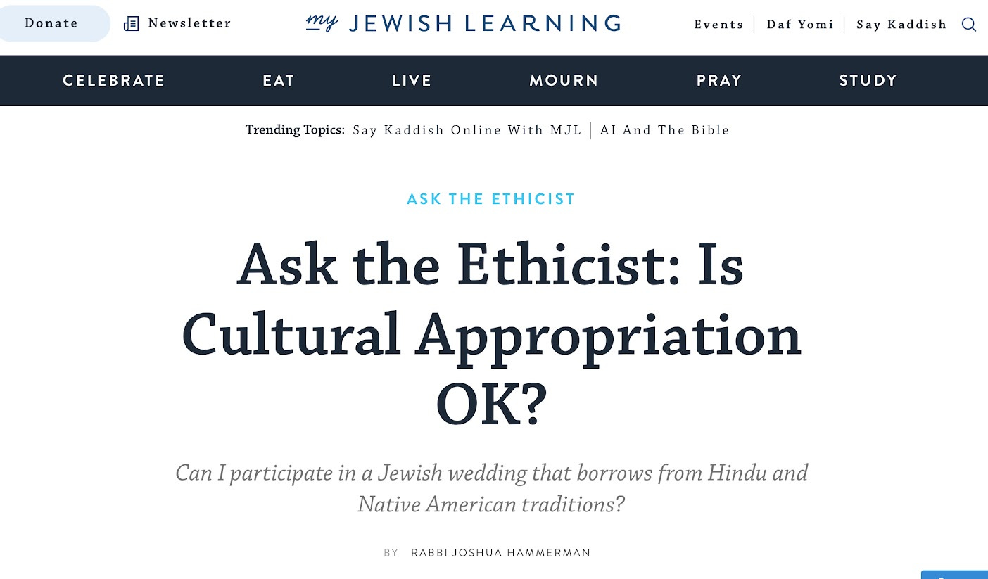 Check out my new Jewish Ethicist piece at MJL, “Is Cultural Appropriation OK?