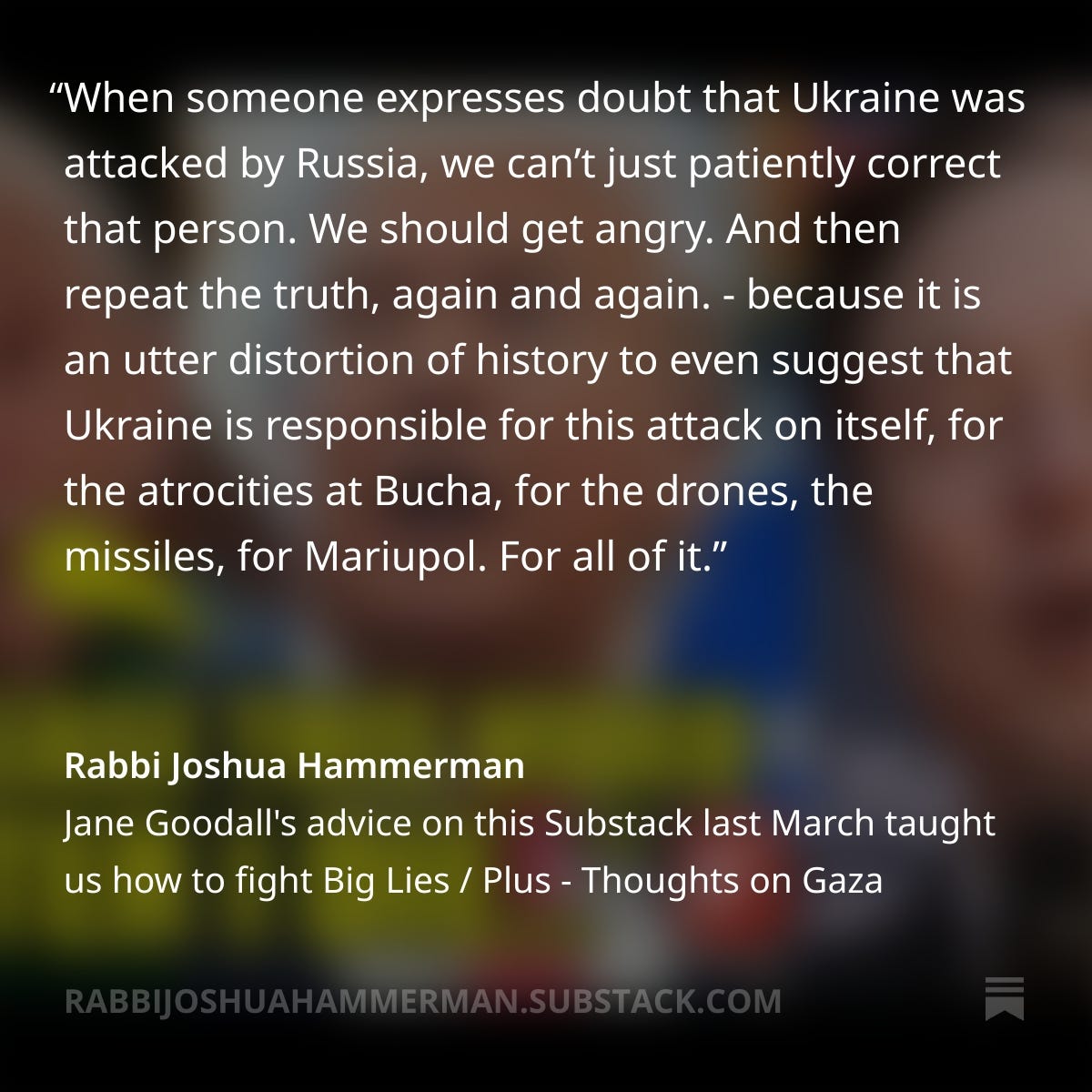 Jane Goodall’s advice on this Substack last March taught us how to fight Big Lies / Plus - Thoughts on Gaza
