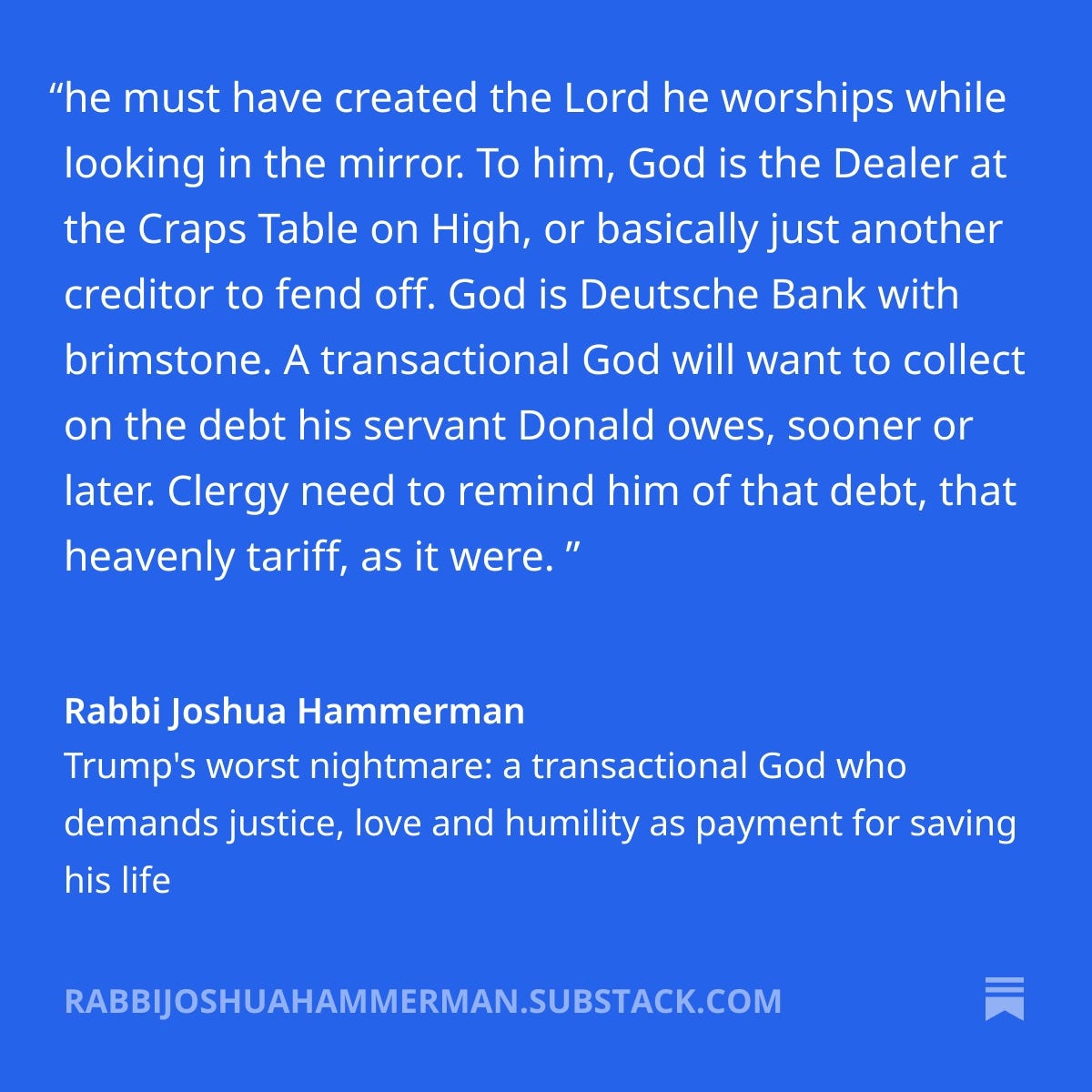 Trump’s worst nightmare: a transactional God who demands justice, love and humility as payment for saving his life