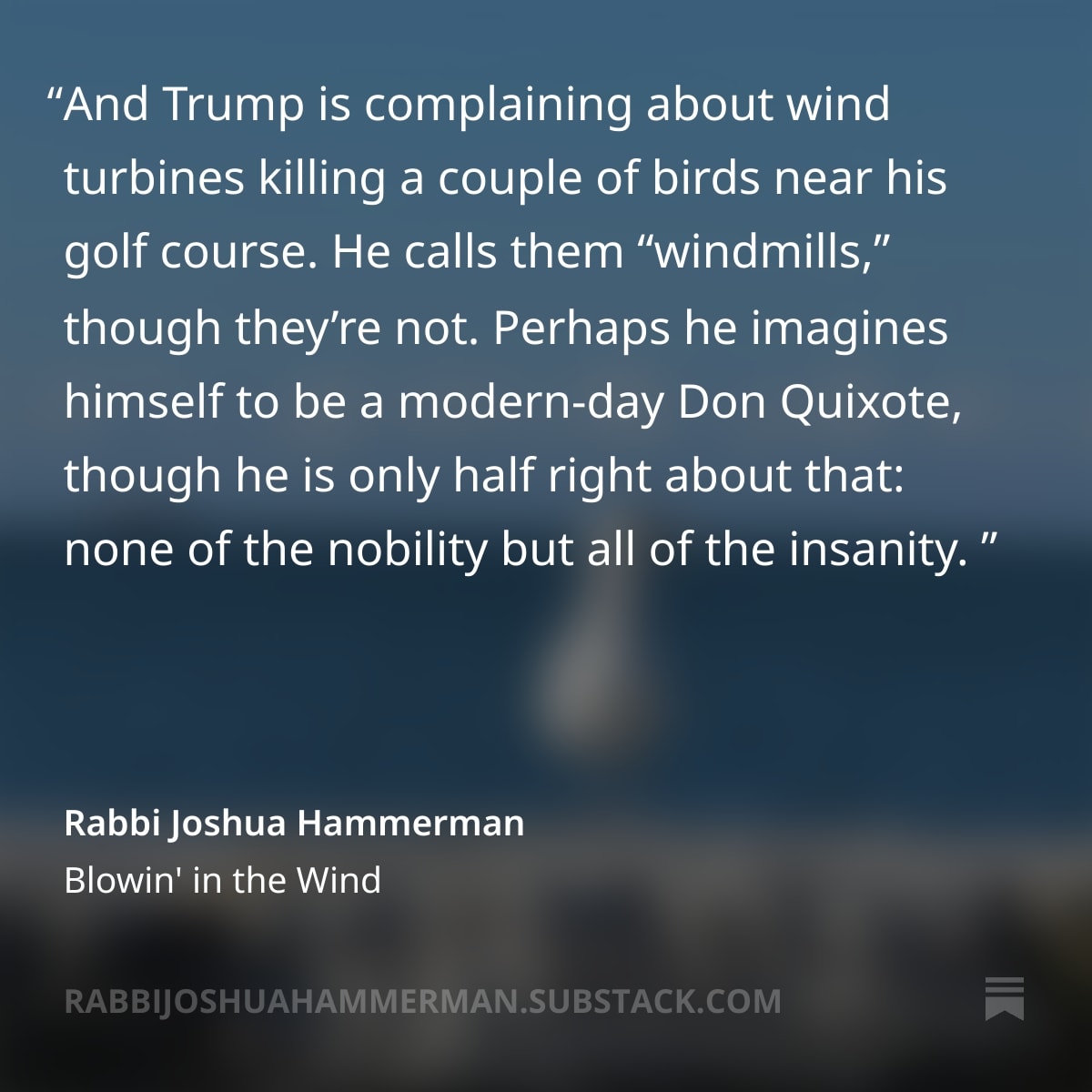 Wind, water and sun. While Trump flails at what he calls “windmills,” the natural forces that have sustained us for millennia can save us now.
