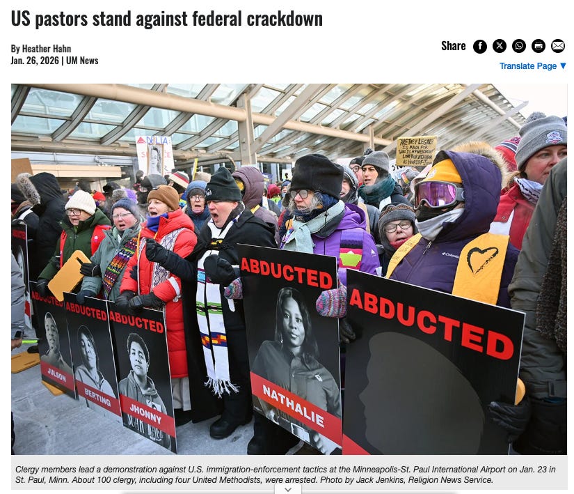 And meanwhile, a few miles away from Lemon and the church, a hundred clergy were arrested at anti ICE protests at the airport, and throughout the state - and country - clergy are lending moral leadership to the cause in a manner reminiscent of the civil rights movement. Trump’s toadies are going to fail if their goal is to divide religious leaders from journalists.
