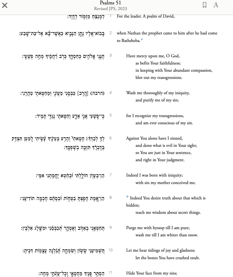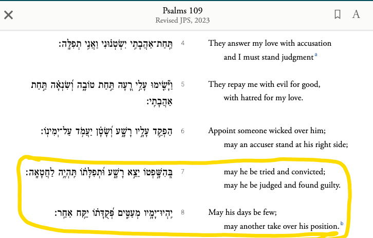 In the video above, I discuss Psalm 511, whose theme is ACCOUNTABILITY (You can generate a transcript if you would rather read than listen). Clearly it’s one that is relevant right now, given that our president and his collaborators refuse to take responsibility for any misdeed. Apologizing is their deadliest sin, right up there next to honesty. They put a lie to their own projected accusations of “Trump Derangement” with unmoored demonstrations like Pam Bondi’s all-timer this week in Congress. In any event, I’d much prefer being accused of derangement to being complicit in the great moral unraveling of the Trump-Epstein era.