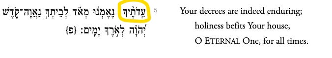 You see, the word aydotecha - decrees - circled in yellow above, contains the word ayd, which means witness, and ayda, which means testimonies. When I returned from my first trip to Poland in 2010, having borne witness to the destruction of Jewish communities and having become the embodiments of their legacy, their very lives, I prevailed upon George (and a very reluctant choir) to descend from the bima on Kol Nidre night that year, which happened to be a Friday, when that psalm is recited, and to dance. Dancing on Kol Nidre night was not something my congregation (or, frankly, most congregations) had remotely considered before then. And while at times I felt like Kevin Bacon in “Footloose” avoiding John Lithgow’s icy stares, the message was powerful and enduring - and dare I say, liberating - celebrating the triumph of life in the face of death, which is, in itself, a prime message of Yom Kippur.