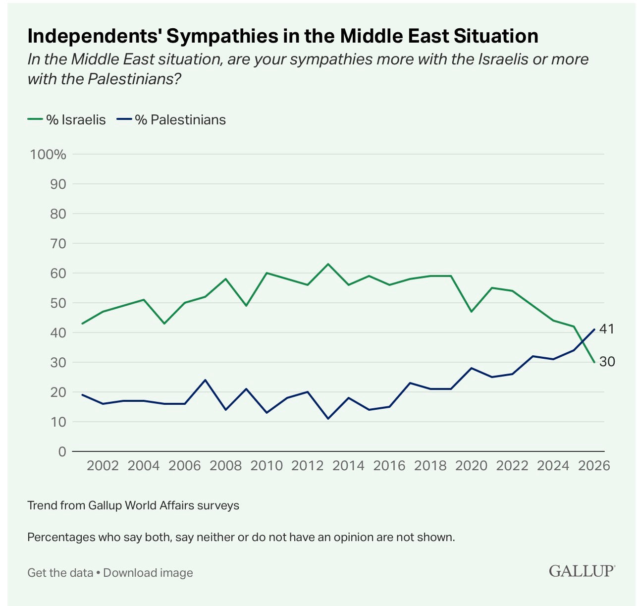 And let the good people of Israel and America spend the rest of 2026 trying to rebuild their tattered democracies. Now, unless there is a definitive victory in Iran very soon, Israel will be judged even less kindly by all Americans, including Jews themselves. The next Gallup poll might make this one look sanguine by comparison.