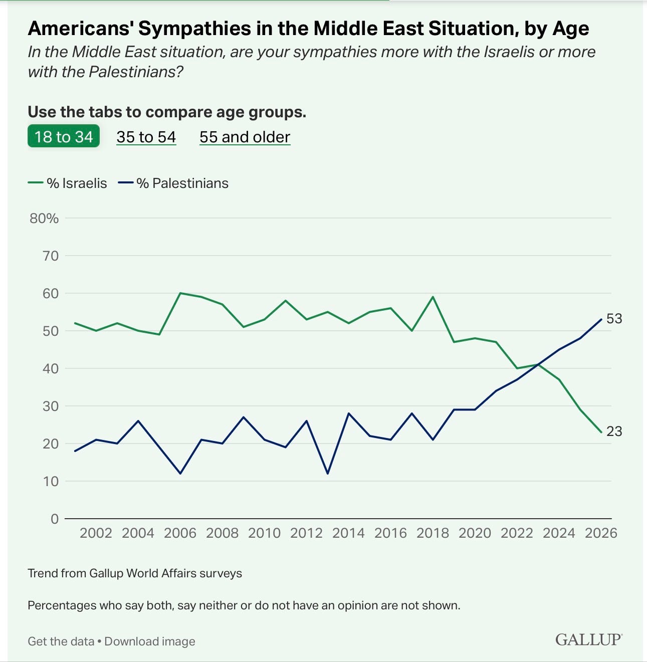 That’s in part because American Jews have turned from Israel in devastating numbers. In a Washington Post poll of American Jews conducted in early September, about half disapproved of the military action Israel had taken in Gaza and 61%, think Israel has committed war crimes against Palestinians in Gaza. So the baseline of support before the current Iranian war was disturbingly low.