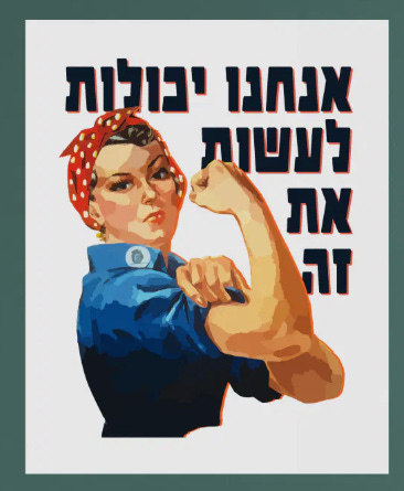 Not a single Suzie Homemaker is to be found. In iconic posters, especially those produced by the Shamir brothers, we find strong women with clenched fists, who weren’t just keeping the seat warm for males, like America’s Rosie the Riveter, they were literally parachuting in with the big boys - cue Hannah Senesh.