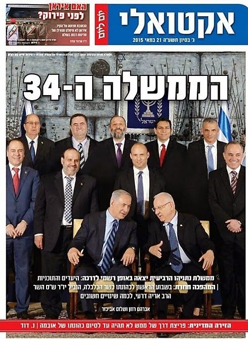 A few years ago, when a new Israel government was sworn in (don’t ask me which, there have been a lot of them!), one Ultra-Orthodox newspaper tried to airbrush women out of the picture completely. See below, first the original photo and then the airbrushed version:
