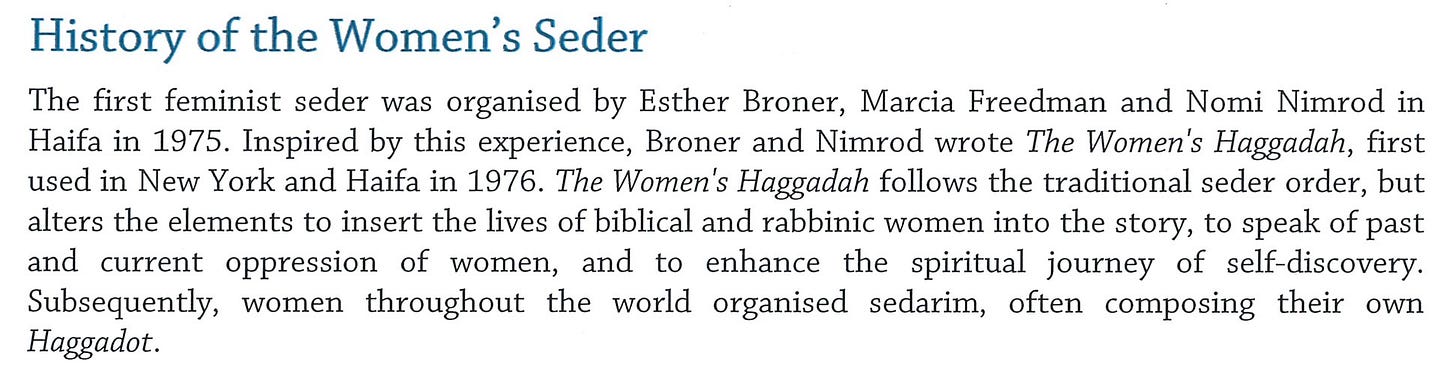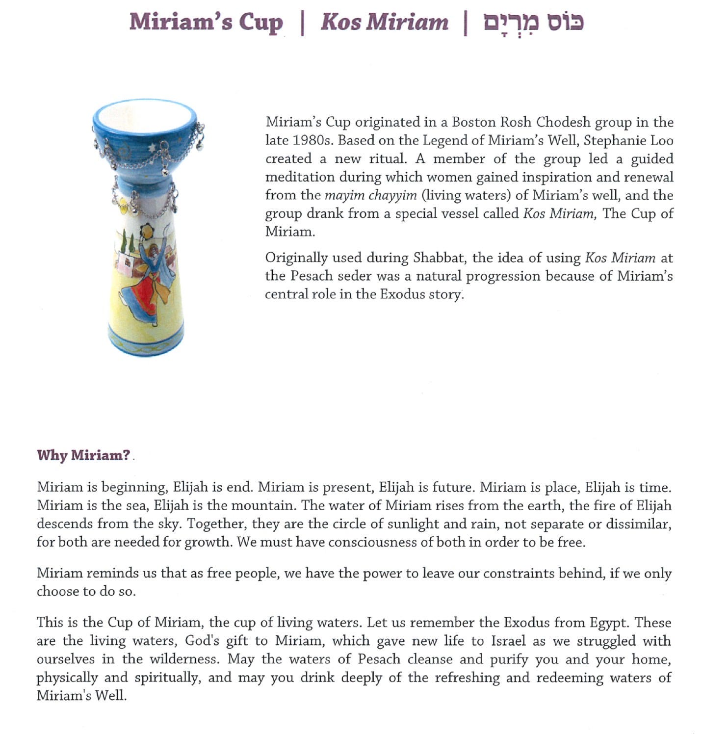 Ironically, no biblical story celebrates the contributions of so many badass women as the liberation from Egypt, from Miriam, Moses’ sister, to Jocheved, his mother, to the Egyptian (or Hebrew) midwives, to Pharaoh’s daughter, to all the women who danced with their timbrels at the Red Sea. This all changed with the advent of feminism, which brought us Women’s Seders4, Miriam’s Cup5, which has become ubiquitous, and the marvelous music of Debbie Friedman, who sang of women dancing at the Red Sea.