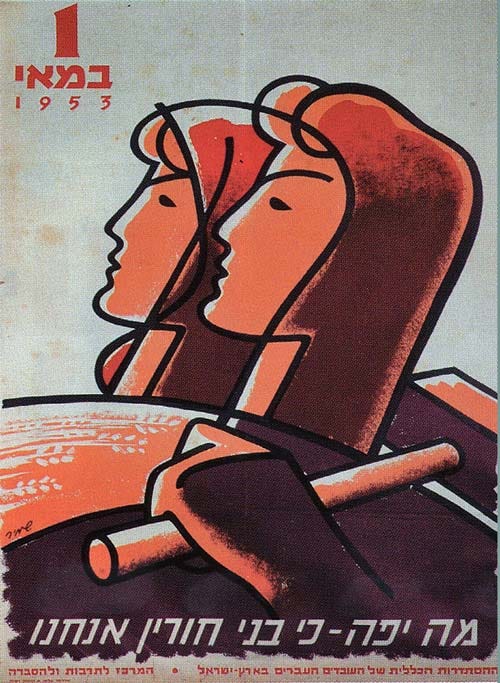 There is something to be said for Israel’s socialist origins. See this poster, where a couple who could pass for Adam and Lilith, awash in their worker’s utopia, proclaims, “How beautiful it is that we are a free people.”