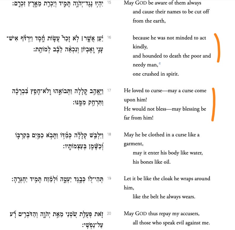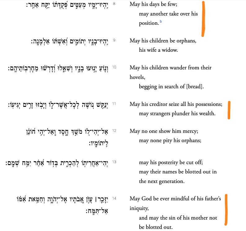 יִֽהְיוּ־יָמָ֥יו מְעַטִּ֑ים פְּ֝קֻדָּת֗וֹ יִקַּ֥ח אַחֵֽר׃