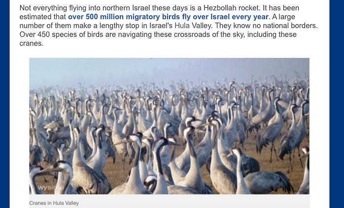 Yes, we need to remind ourselves that this sacred, beautiful and tragic Land is not only holy to Jews, Muslims and Christians - but to cranes and sunflowers too.